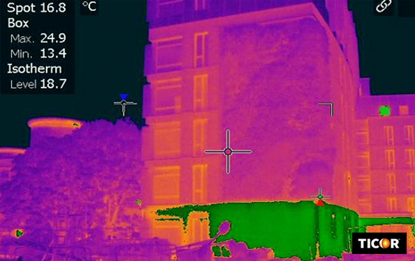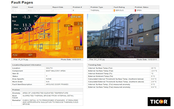 TICOR™ Reporting software is used to detect faults and problem areas within a variety of building types. These problems include missing, displaced or damaged insulation, paths of air leakage, thermal bridging, foreign objects within cavity areas and other construction defects.